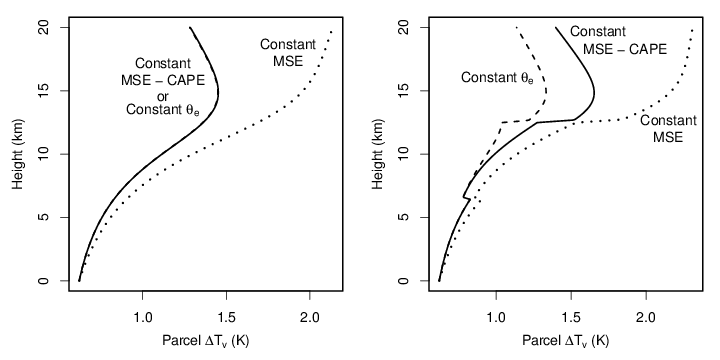Romps, MSE minus CAPE is the true conserved variable for an adiabatically lifted parcel, JAS, 2015